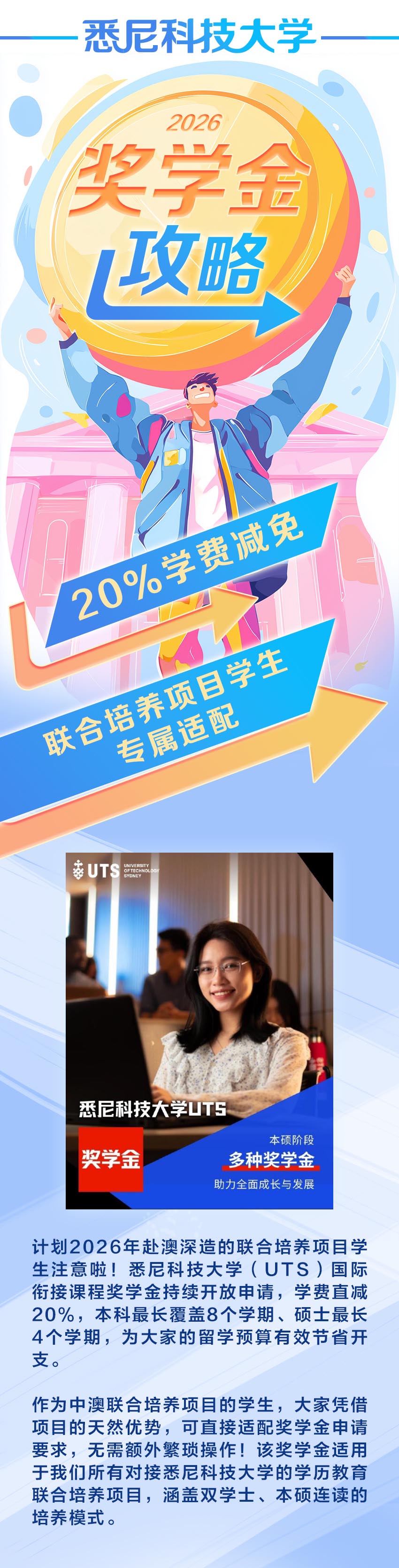 悉尼科技大学2026奖学金攻略!20%学费减免,联合培养项目学生专属适配~